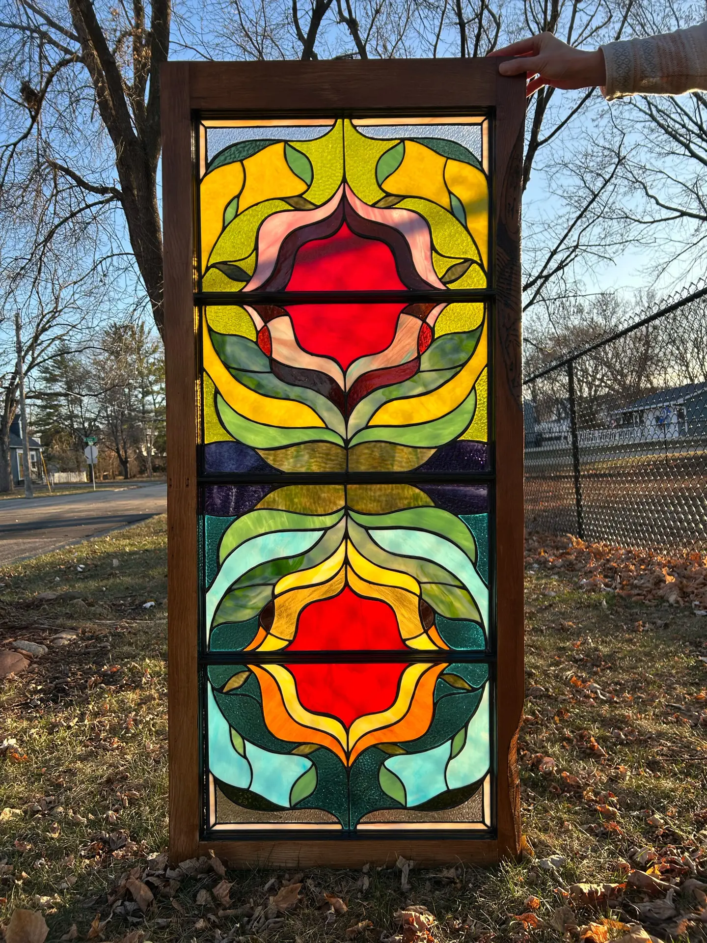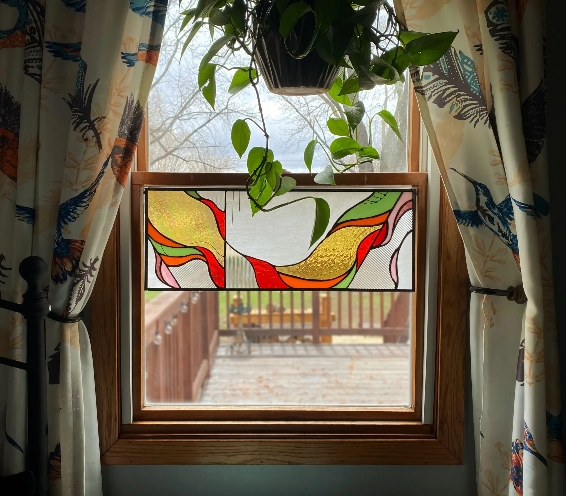 Each stained glass panel is personally designed and handcrafted by me. If you’re interested in commissioning a custom piece or purchasing an existing panel, please feel free to contact me.